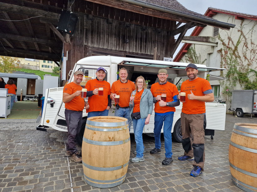 In der Mitte: Braumeister Thomas Reich (Braugarten Bier, Rheinau)